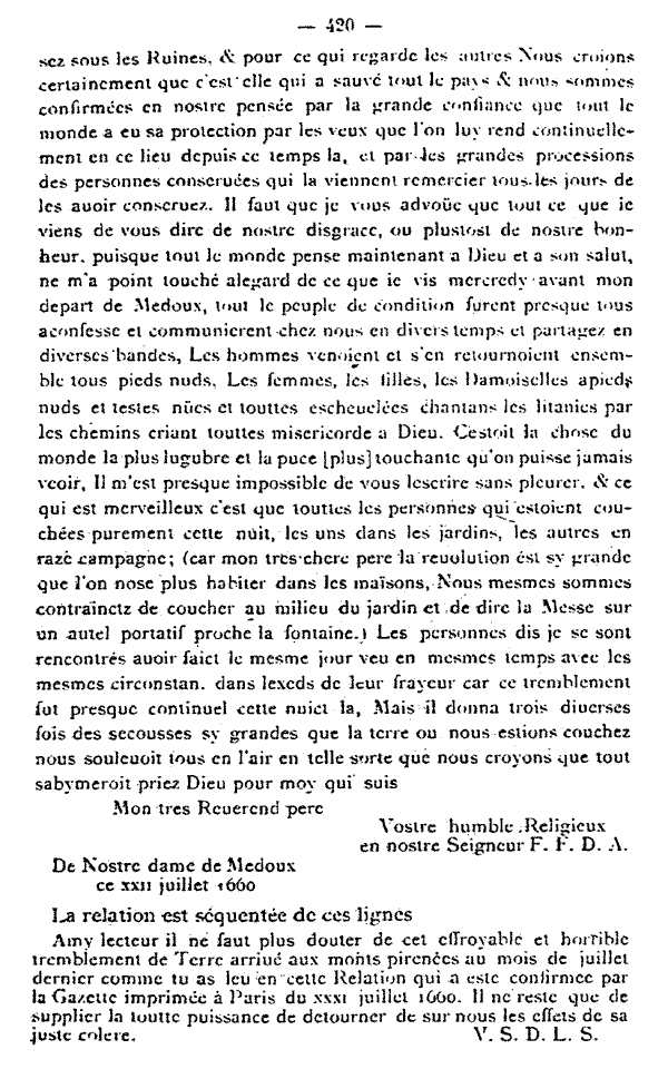 UNE RELATION INCONNUE DU TREMBLEMENT DE TERRE DE 1660 A BAGNERES-DE-BIGORRE